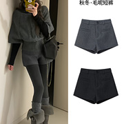 灰色毛呢辣妹短裤女冬季2025新款小个子加厚高腰a字外穿打底靴裤