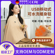 便携电热披肩暖身毯移动充电加热盖毯可水洗外穿小型家用户外毛毯