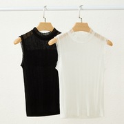 允古秋冬高档蕾丝领精纺羊毛打底衫女内搭时髦洋气背心时尚百搭