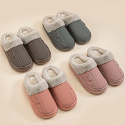 牛皮面防水秋冬季棉拖鞋女室内厚底防滑家居鞋男冬天保暖厂家现货