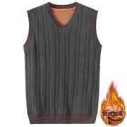 秋冬季男士加绒加厚假两件衬衫V领保暖套头毛衣打底衫毛衫针织衫