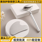 不锈钢面部滚轮单头脸部美容滚轮按摩器304不锈钢刮痧板套装工具