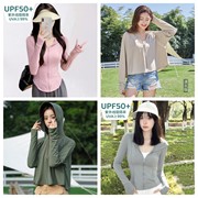 upf30+瑜伽防晒衣夏季凉感冰丝开衫修身外套女斗篷黑胶帽檐防晒服