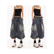 2025新款大码水洗泼墨多口袋工装牛仔裤男直筒宽松阔腿七分裤ins
