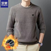 高档男士雪尼尔针织衫中年爸爸冬季加绒加厚保暖毛衣打底衫新款