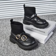 针织温柔短袜靴2025春秋冬新款粗跟中筒马丁靴女时尚显瘦气质靴子
