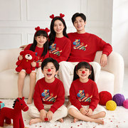 2026马年一家三口四喜庆拜年服红色卫衣亲子装属马本命年过年衣服