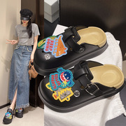 夏季外穿洞洞鞋女刺绣厚底情侣款小众设计拖鞋凉鞋两穿沙滩鞋子潮