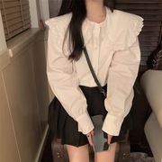 新款独特别致白色仙女绝美上衣高级感小香风镂空蕾丝衬衫女装