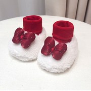 秋冬新生儿加厚棉鞋子婴儿袜鞋男女宝宝可爱公仔高筒毛绒鞋