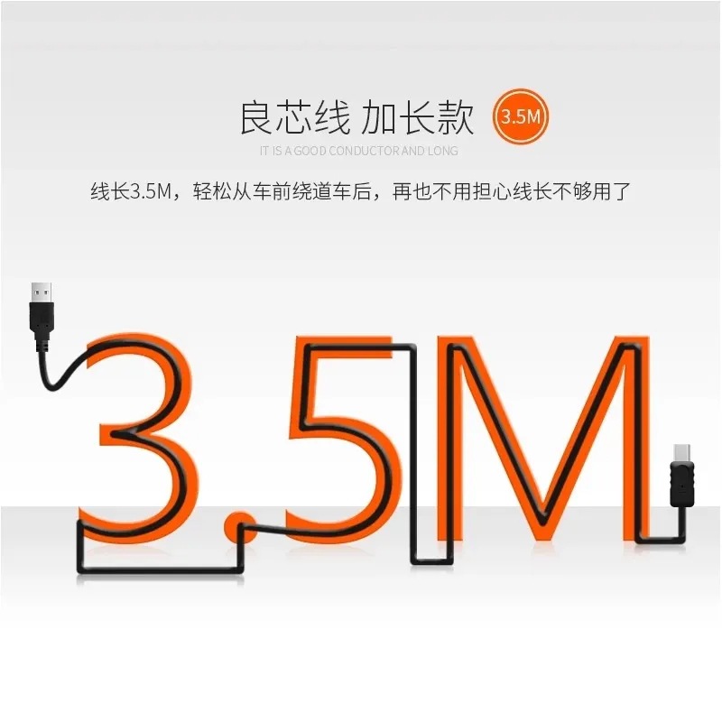 行车记录仪充电线3.5米 USB车载电源线T口 Mini 5P充电线左右直头