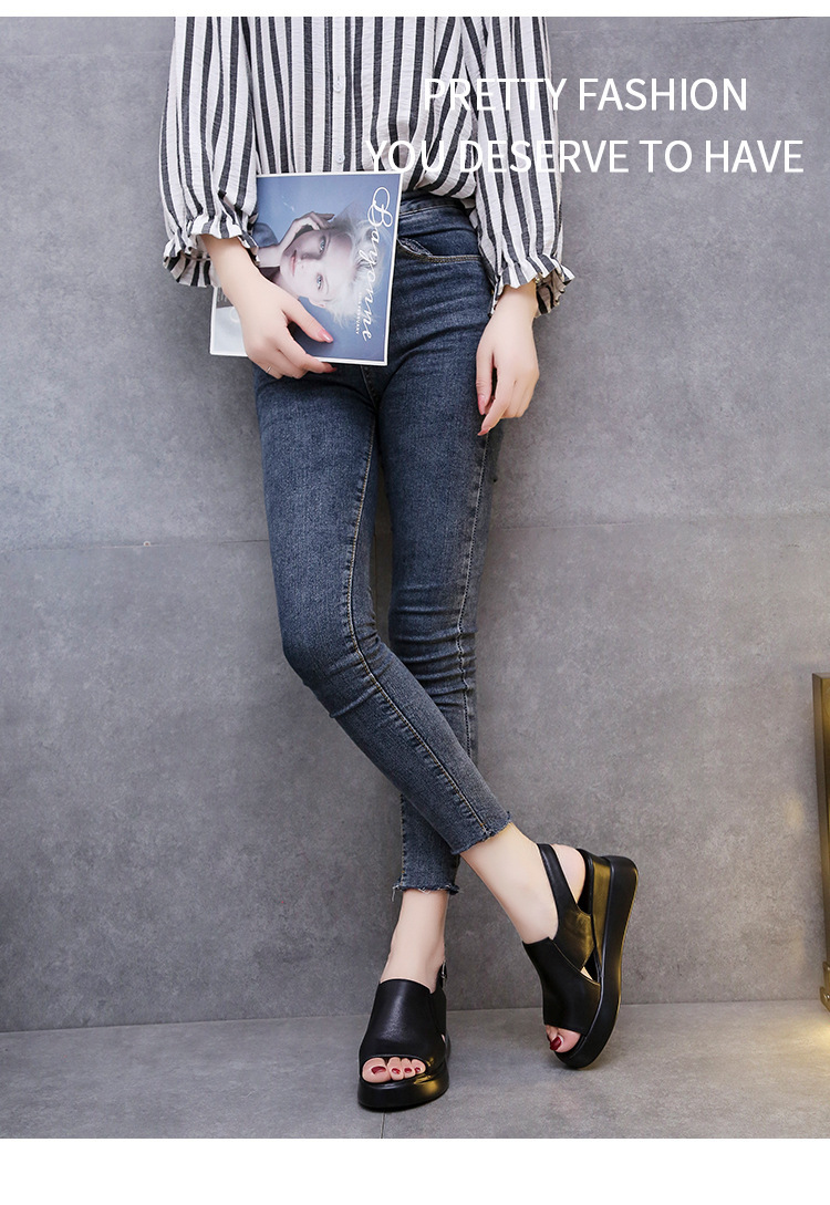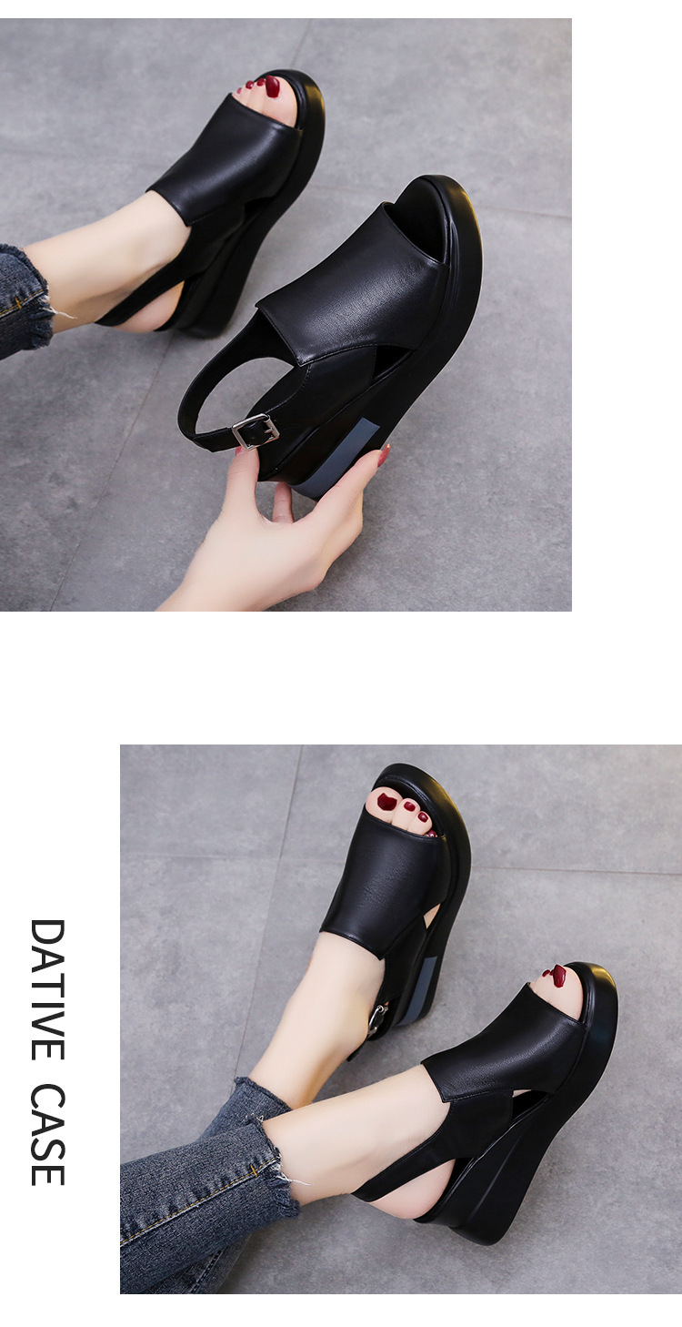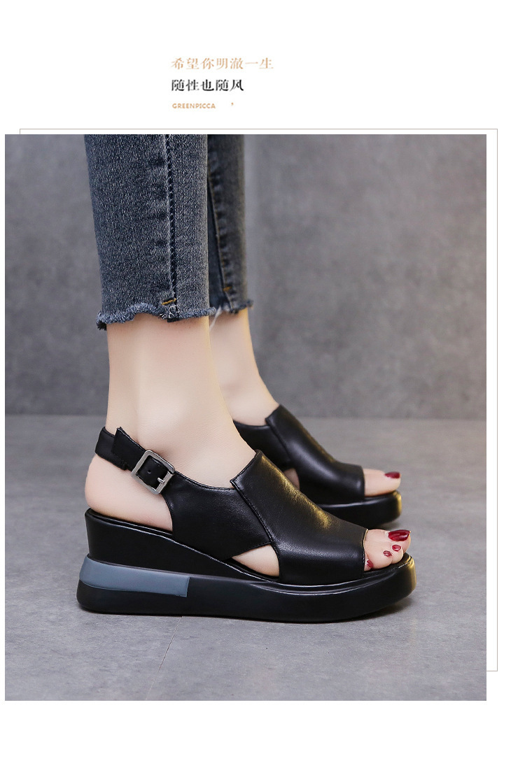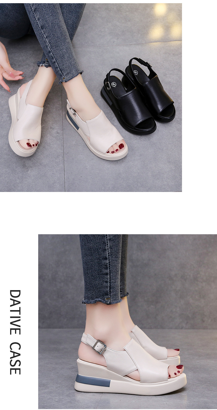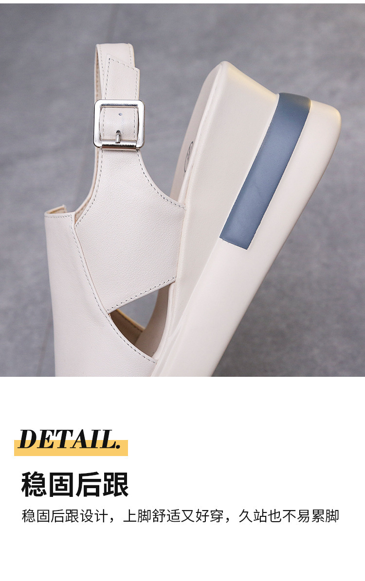 松糕厚底坡跟凉鞋女夏外穿2022后空一字搭扣凉拖鞋大码高跟凉鞋女