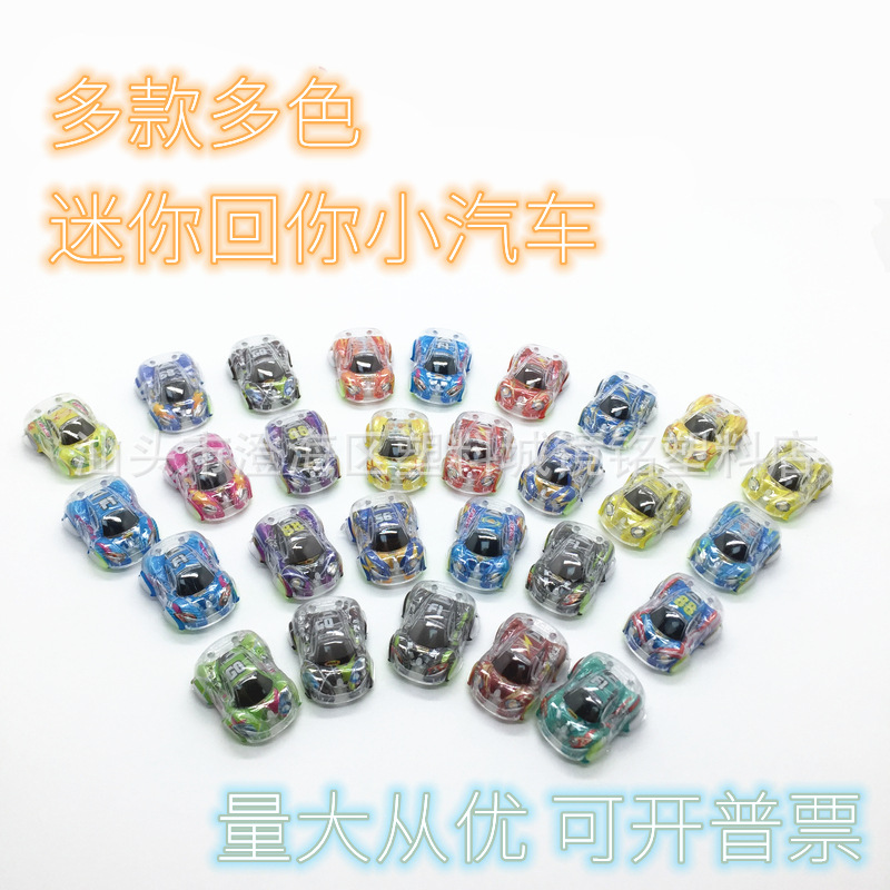 澄海工厂 双层透明涂鸦迷你回力小赛车 可作食品小零食糖玩配送品