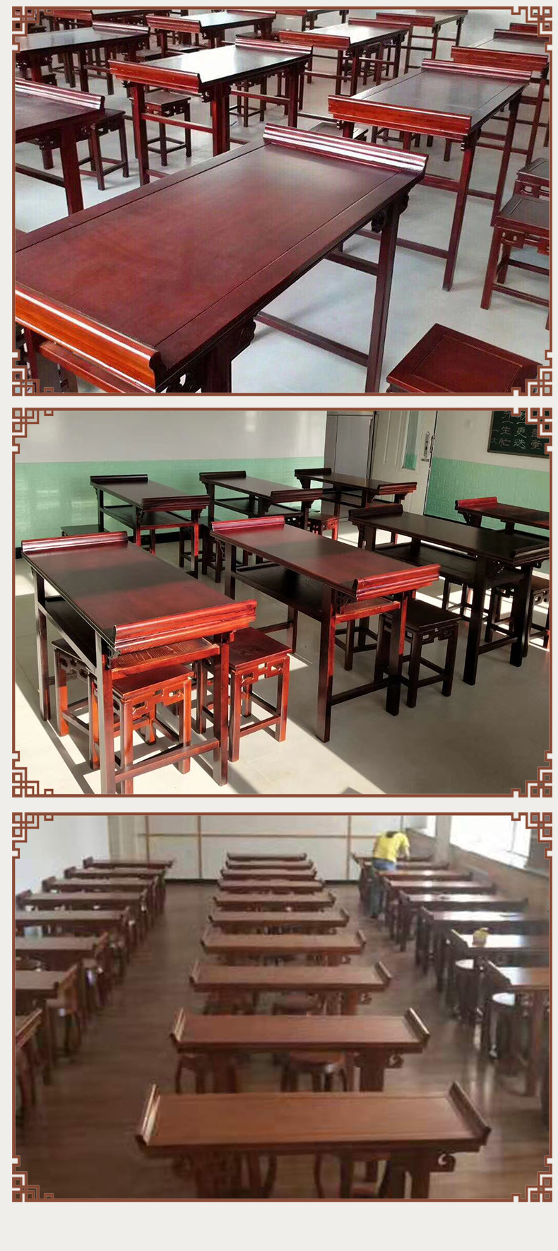 培训班双人书桌榆木马鞍桌子中式原木国风国学桌椅学生课桌实木