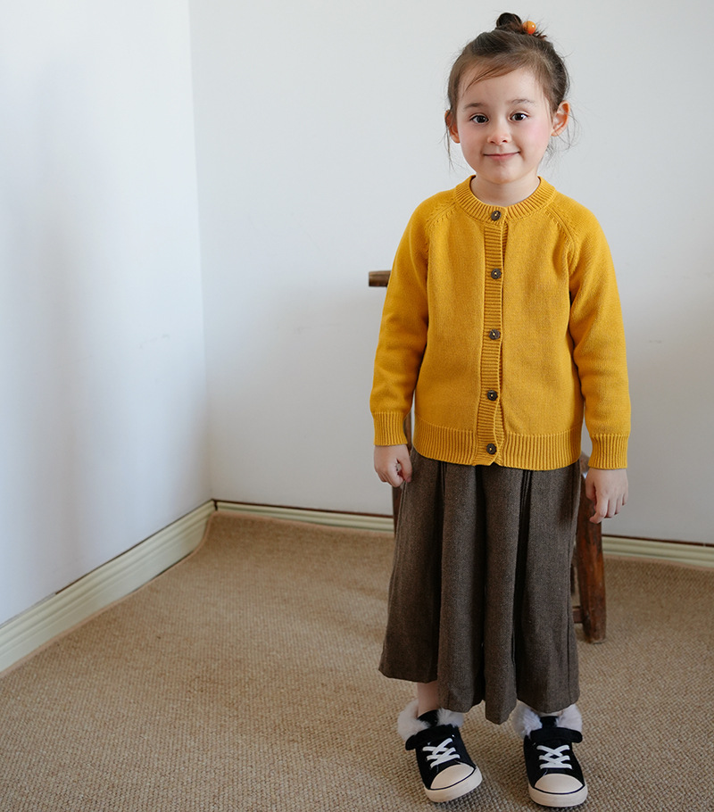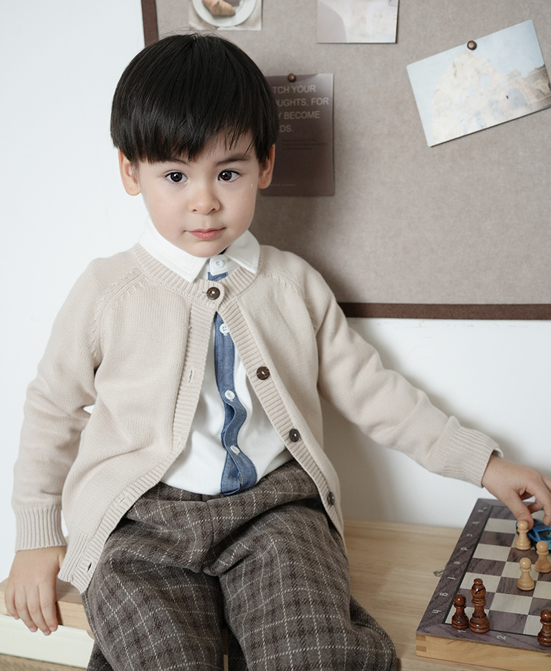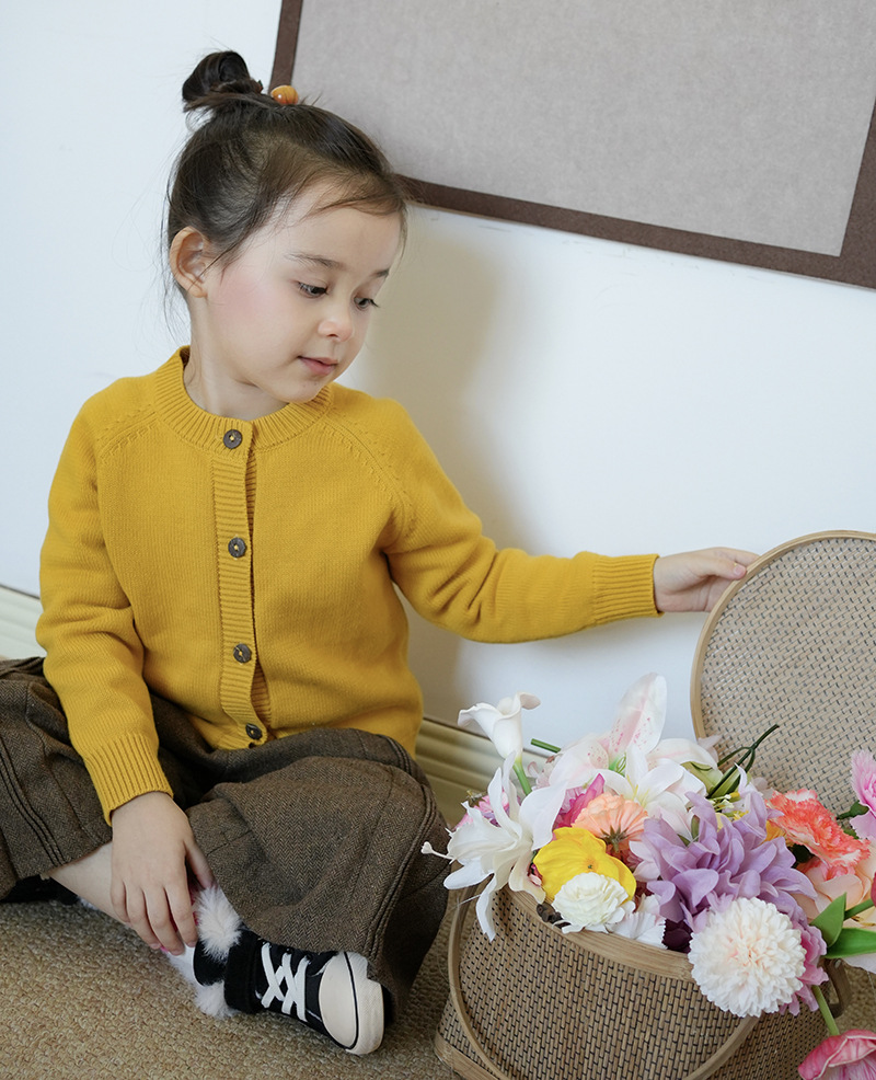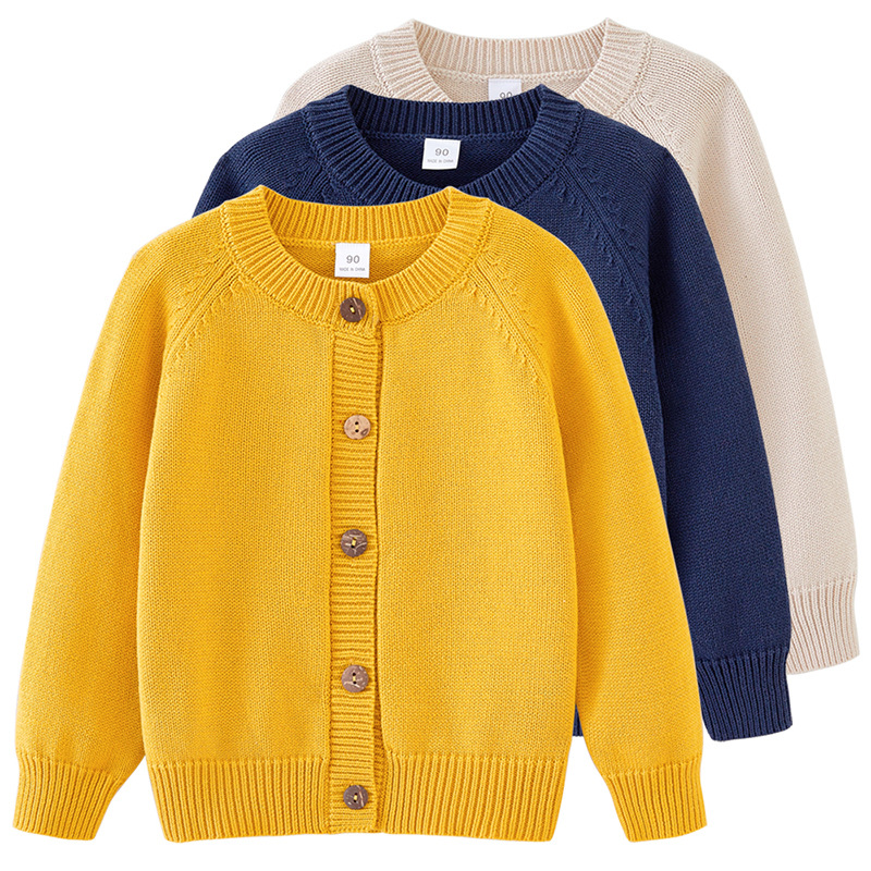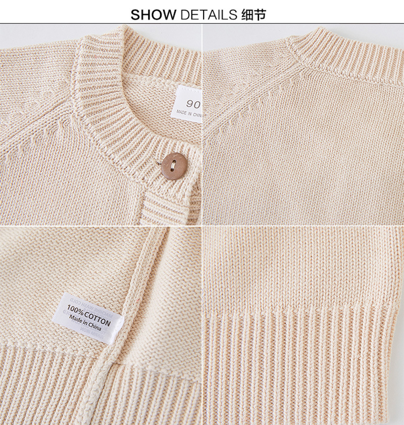2025春秋童装圆领纯色儿童针织开衫 百搭棉线男女童毛衣长袖外套
