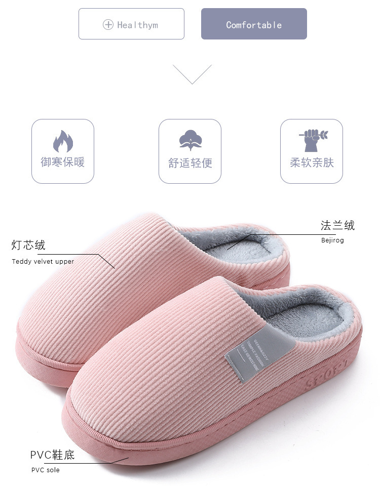 启达顺棉拖鞋情侣居家室内家用棉拖女保暖防滑毛绒棉鞋男冬情侣款
