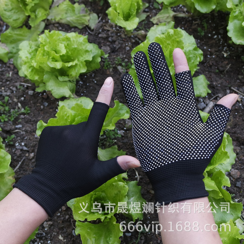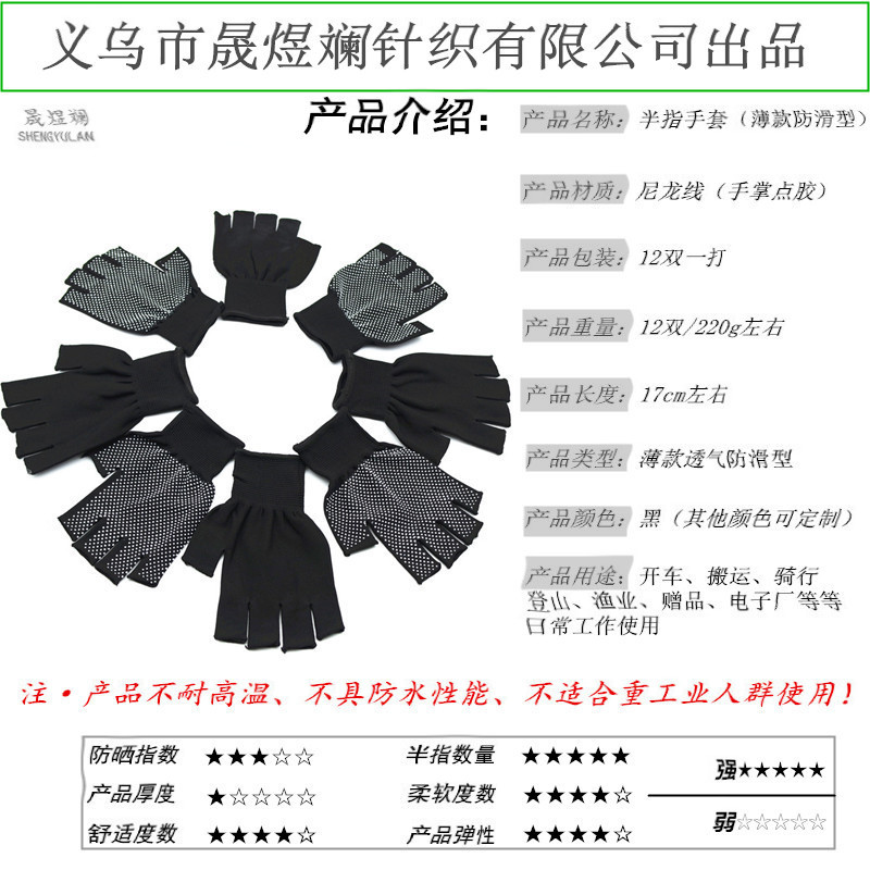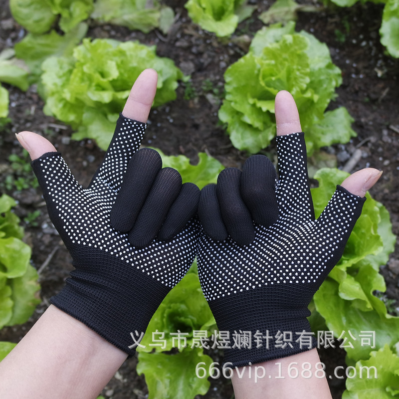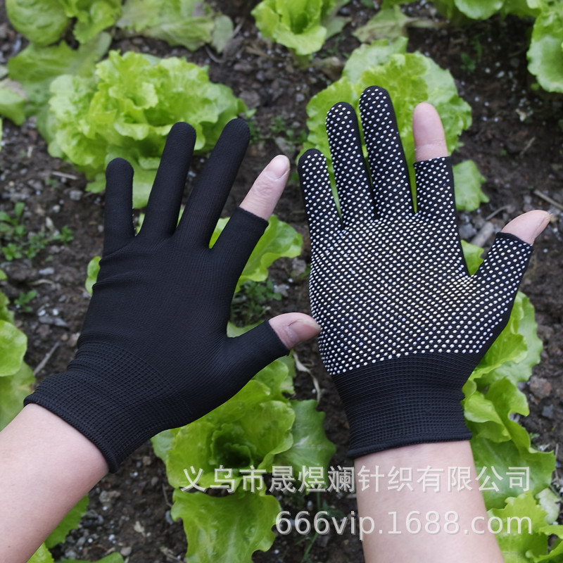 夏季薄款露两指防晒健身骑行单车弹力防滑尼龙漏五指半截手套男女