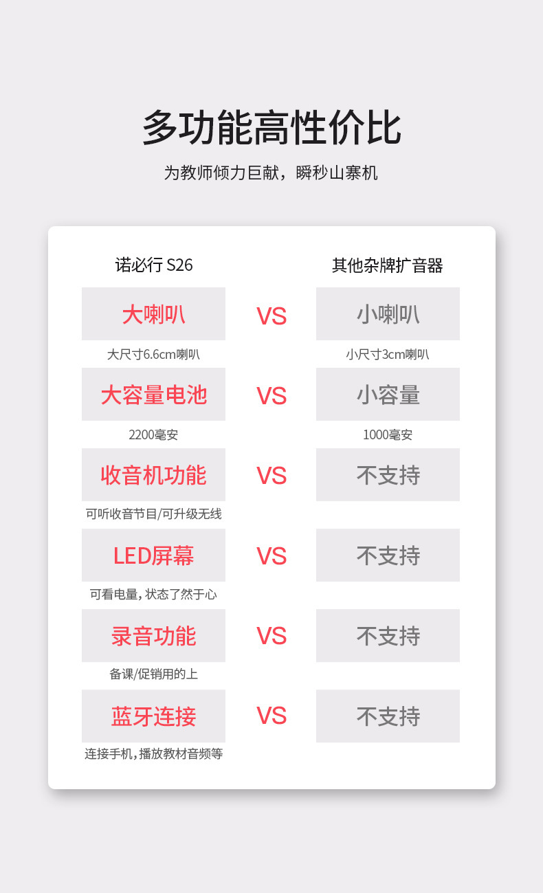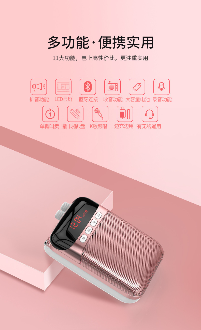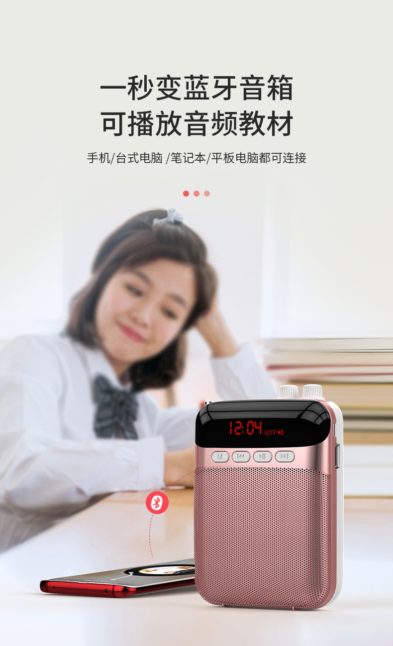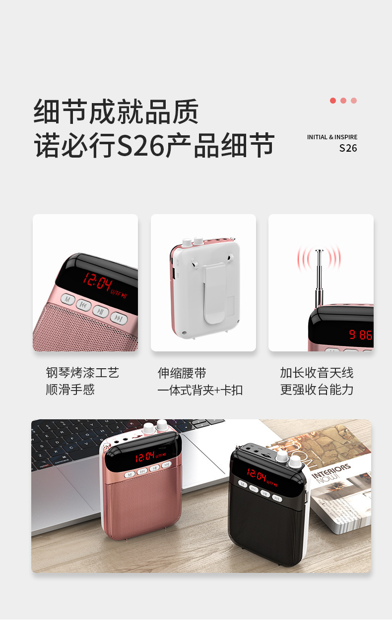诺必行S26小蜜蜂便携扩音器蓝牙插卡U盘录音老师导游喊话器播放器