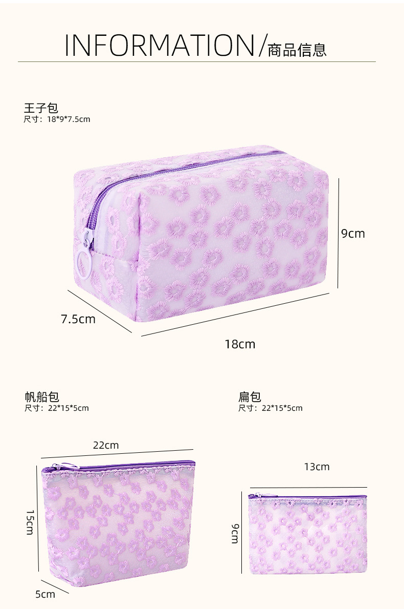 可爱珍珠花朵化妆包大容量便携式手提化妆包多功能洗漱旅行收纳包
