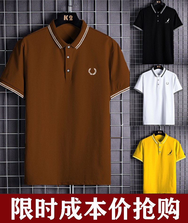 220克纯棉男士短袖POLO衫商务休闲青中年翻领T恤03