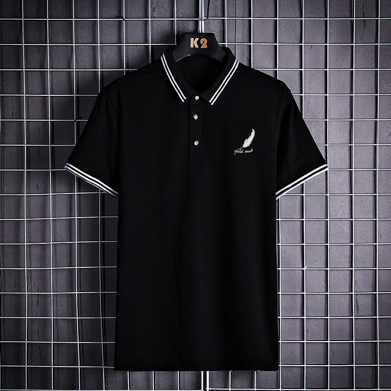 男士polo衫2021夏季麦穗翻领立领短袖t恤修身商务简约时尚上衣潮