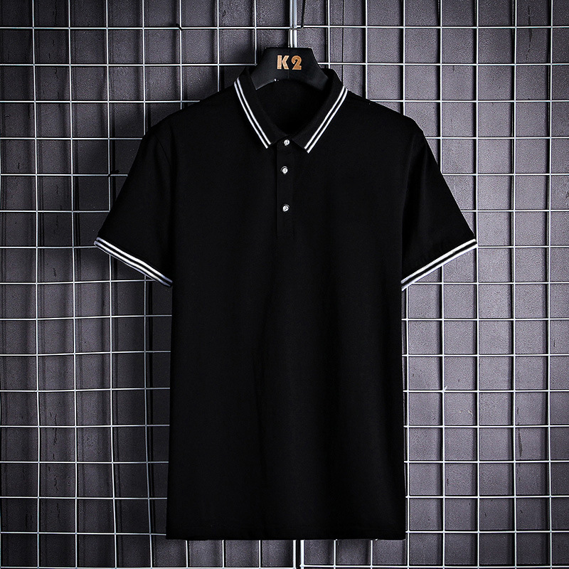 高端230g双面棉空气层衬衫领polo衫男短袖t恤纯色商务男式polo衫