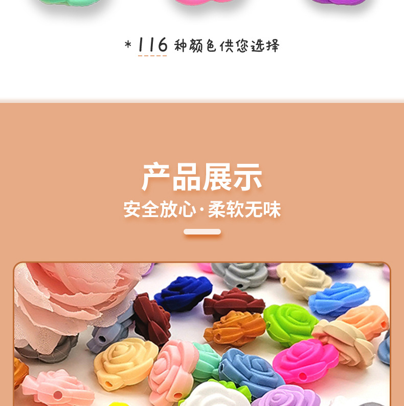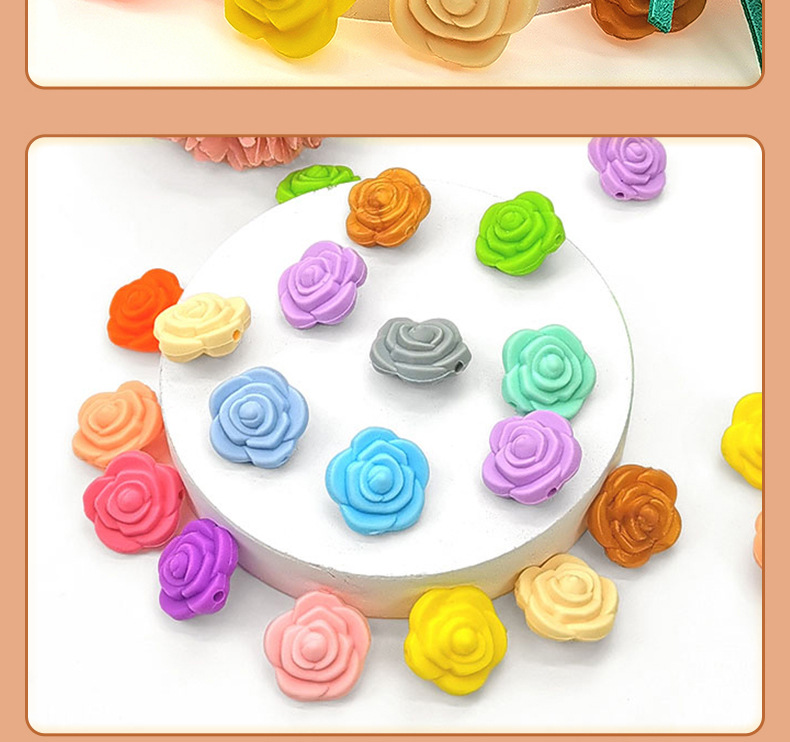 硅胶珠玫瑰花状硅胶珠子双面玫瑰花朵diy手工婴儿安抚奶嘴链散珠