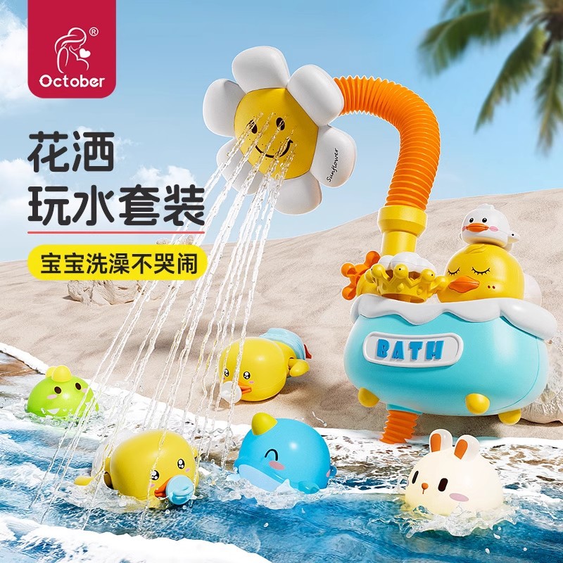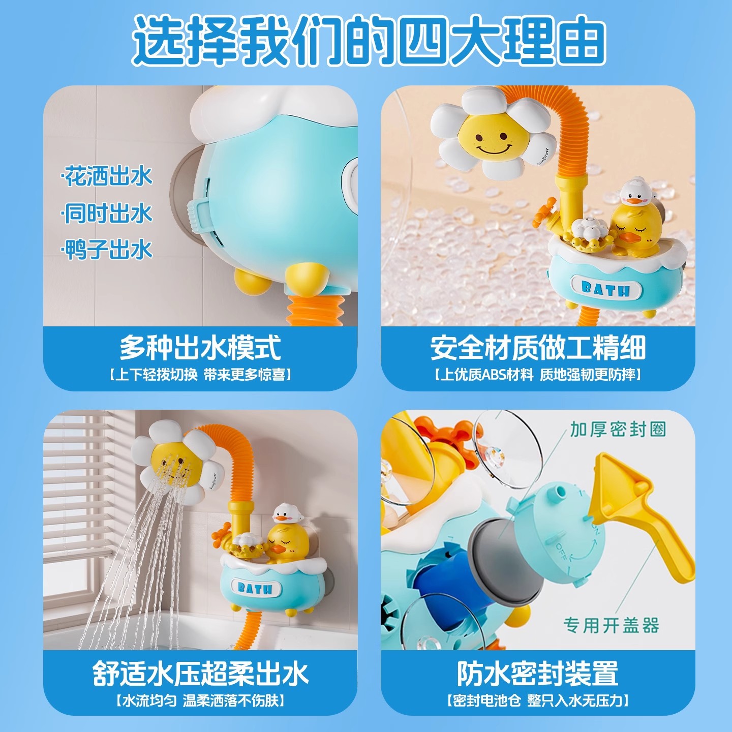 儿童向日葵花洒洗澡玩具电动小黄鸭戏水花洒喷头鸭子喷水男孩女孩
