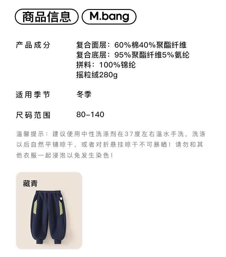 宥宝童装男童加厚卫裤2024秋冬新款宝宝裤子运动裤儿童加绒长裤