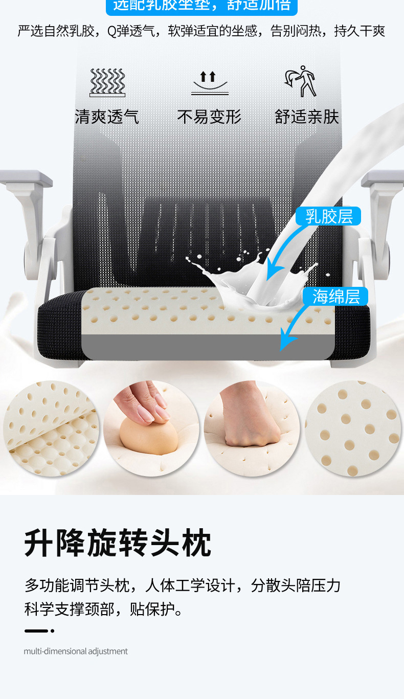 黑框+蓝网+滑轮+乳胶+3D头枕
