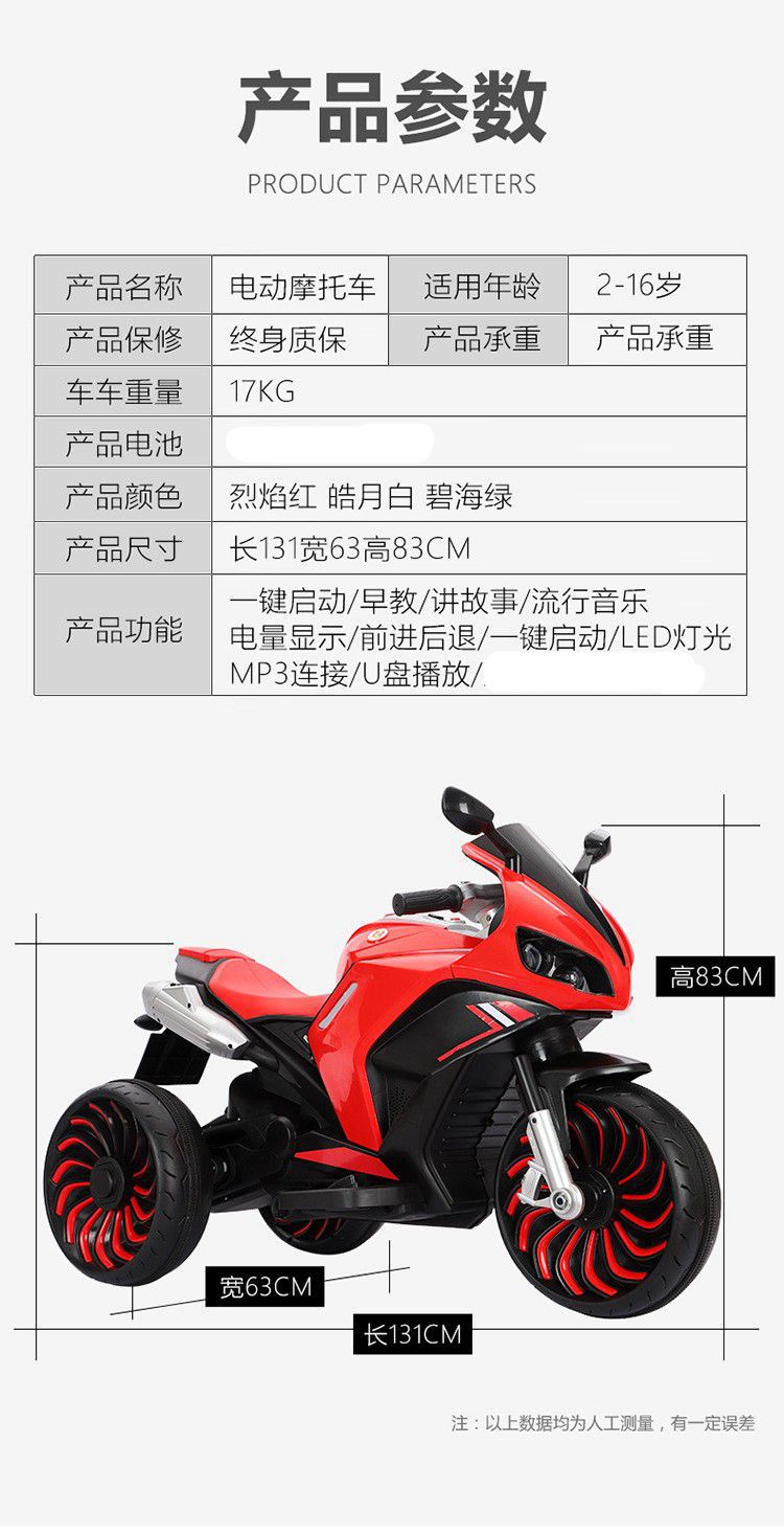 儿童电动摩托车小孩自驾玩具车可坐人宝宝三轮车遛娃神器电瓶童车