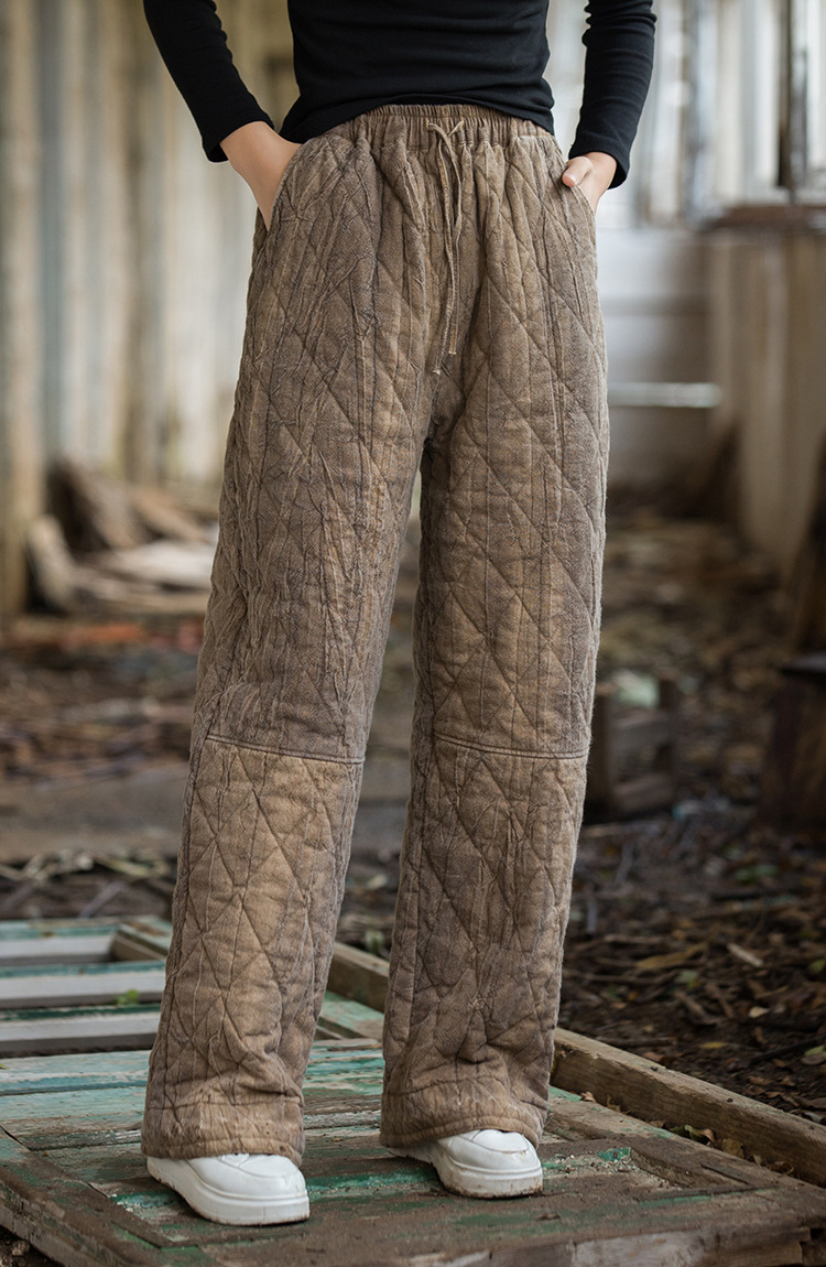 25冬季女装新款苎麻扎染夹棉绗缝裤子松紧腰文艺加厚保暖女式棉裤