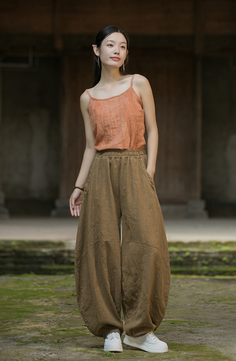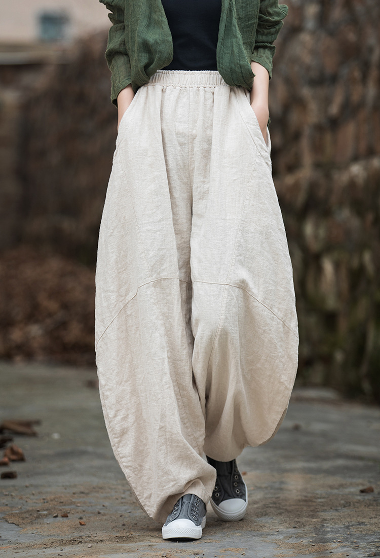 25冬苎麻加绒加厚保暖休闲裤棉麻女装禅意复古显瘦女式灯笼裤棉裤
