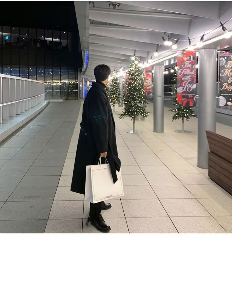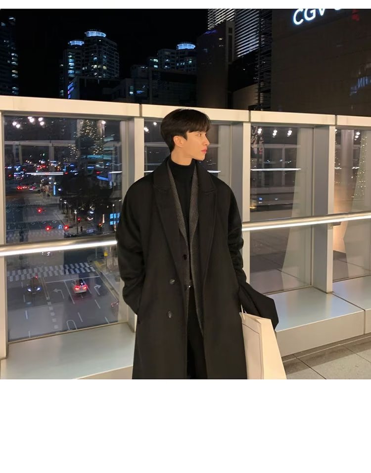 秋冬季毛呢大衣男双层风衣中长款过膝韩版高级感羊绒呢子外套潮流