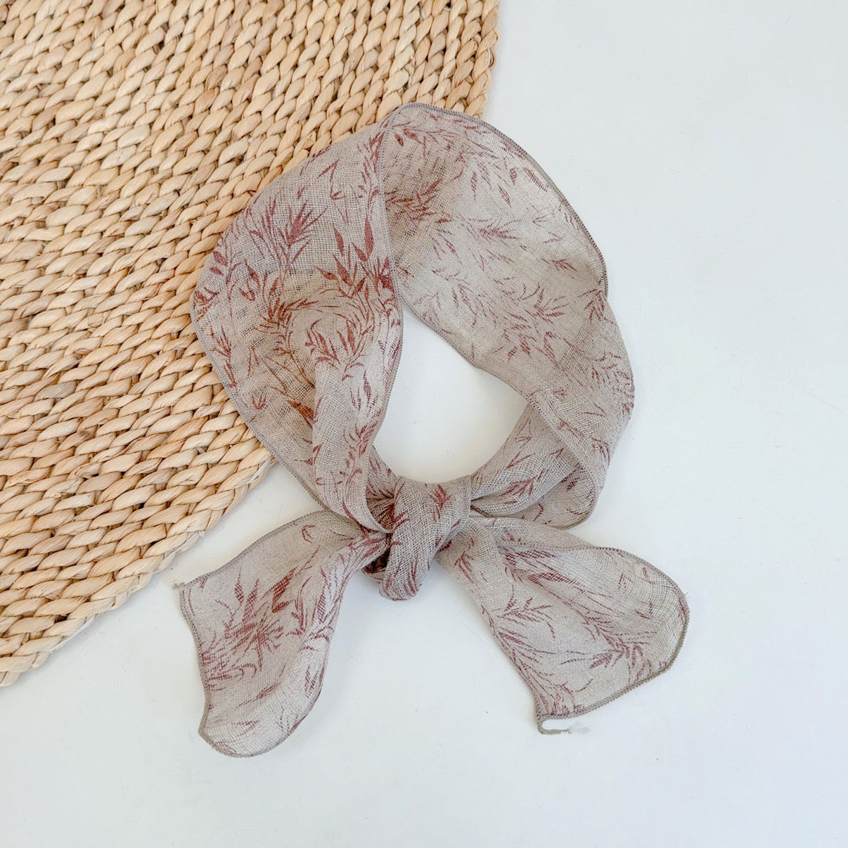 纯亚麻港风雨露原色小领巾 文艺百搭女士夏季护颈小丝巾