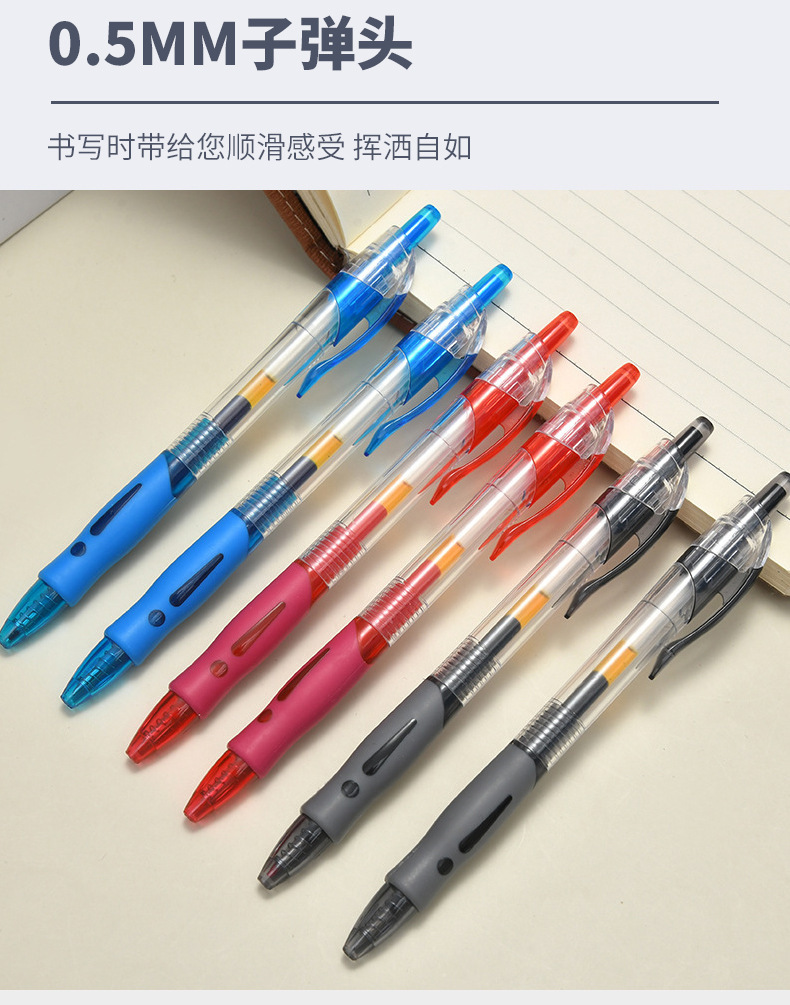 黑色0.5mm按动式中性笔 商务办公签字笔 红色蓝色子弹头笔芯中性