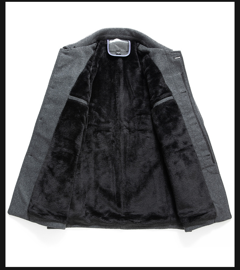 秋冬新款男式商务羊毛大衣时尚内里加绒加厚毛呢男外套翻领呢大衣