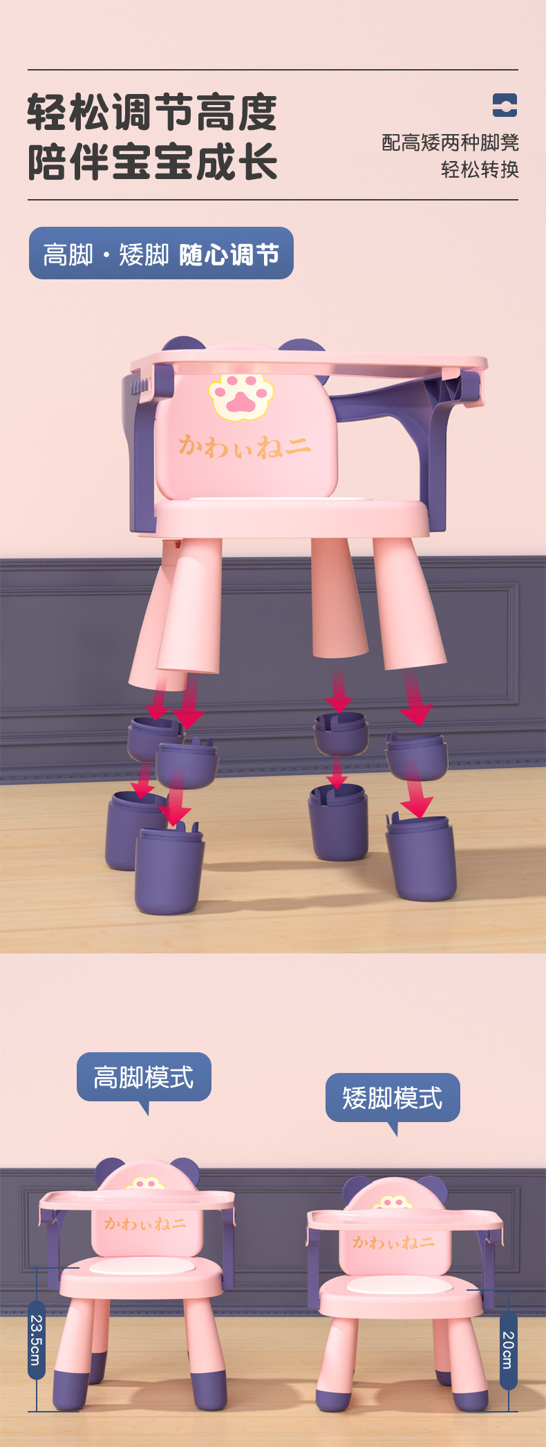 儿童叫叫椅便携式带餐盘靠背椅宝宝吃饭家用儿童板凳幼儿餐桌凳子