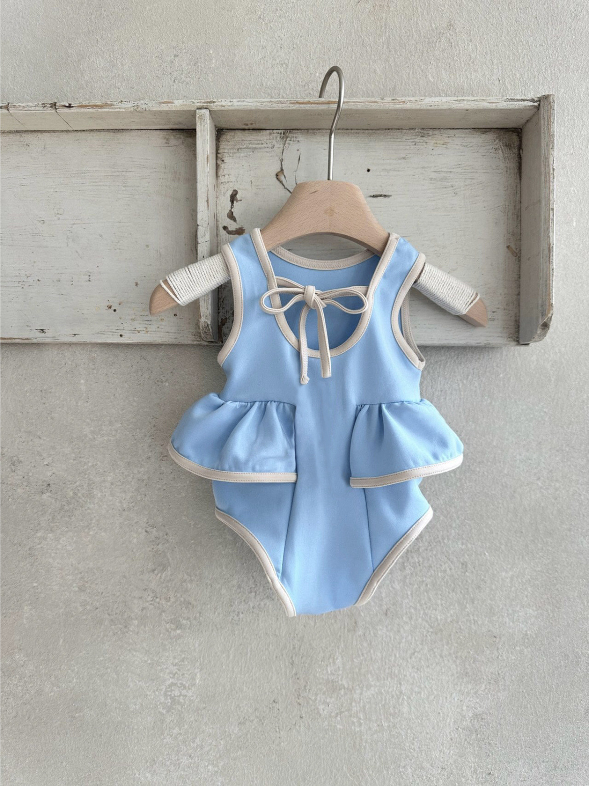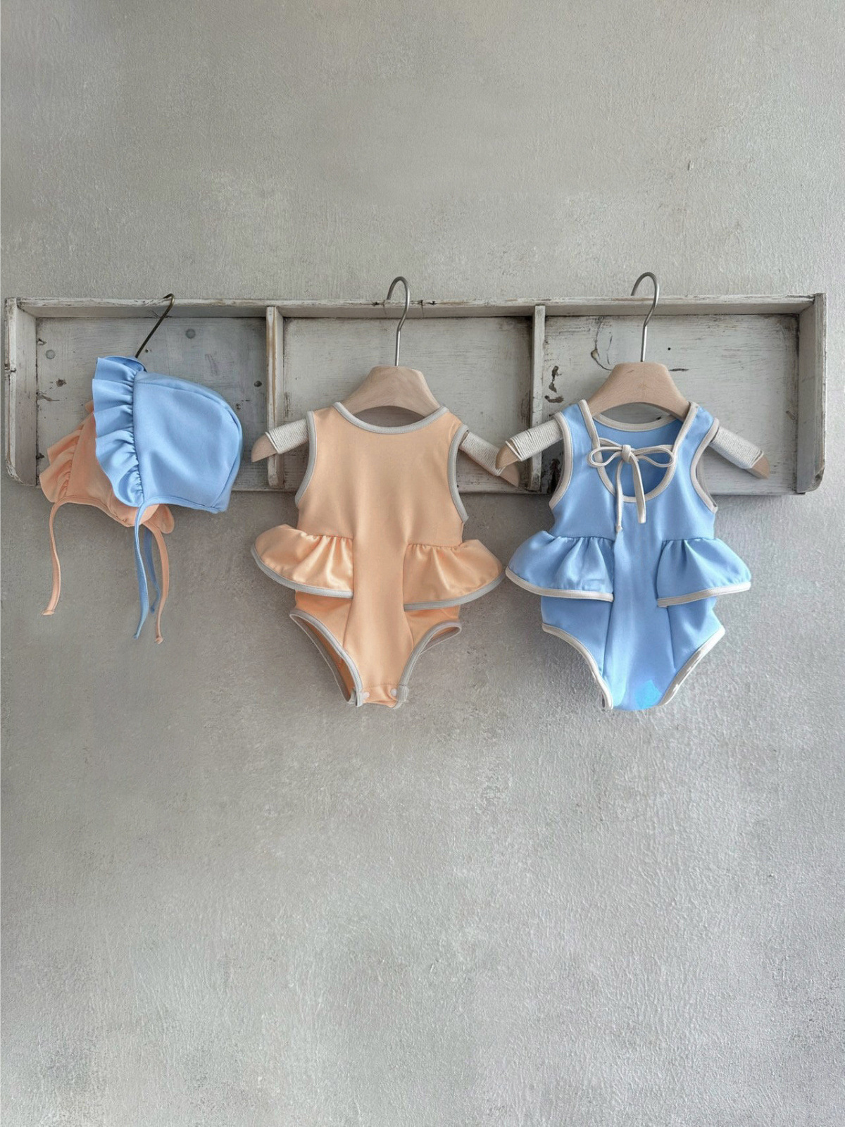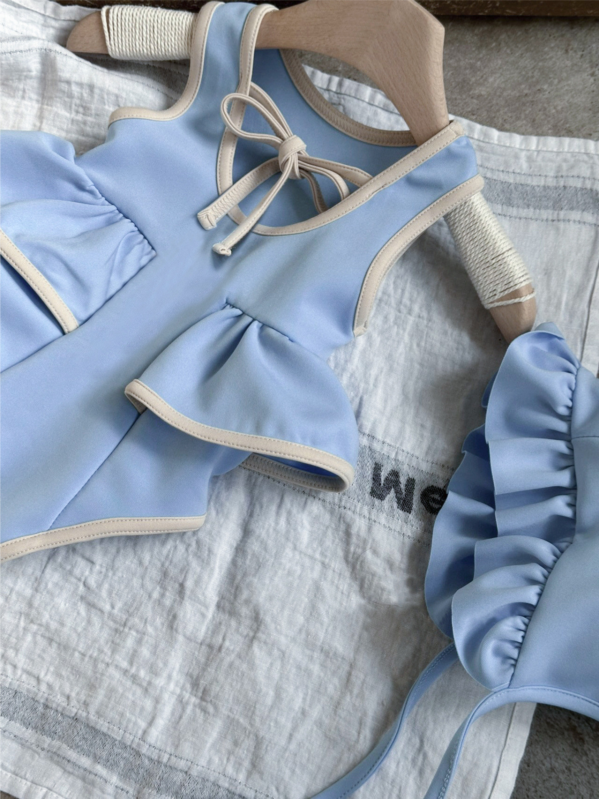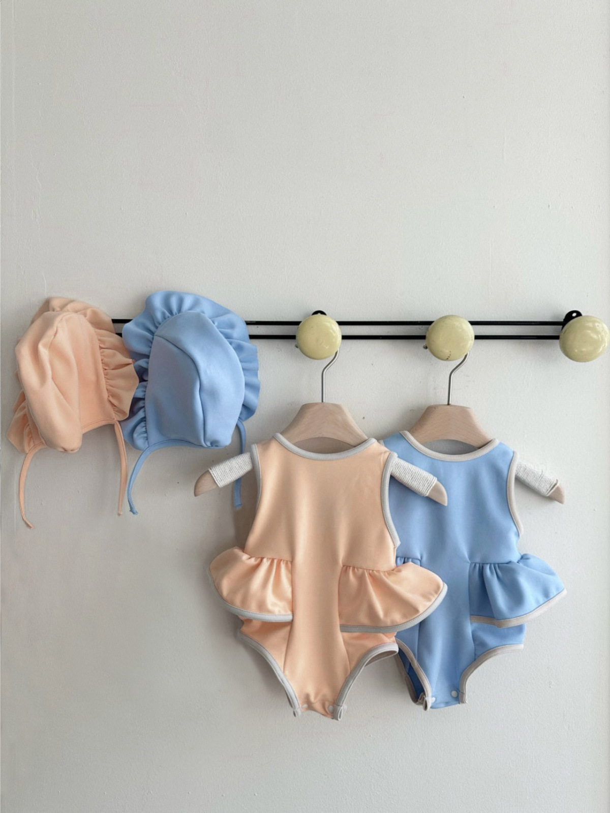 婴儿夏季连体游泳衣女宝宝小女孩无袖半身裙式包屁款泳装送帽子