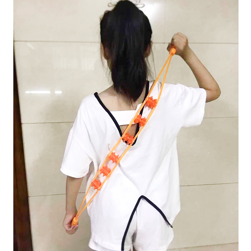 腹部按摩器拉背条背部滚轮按摩器按摩不求人按摩捶手动按摩带