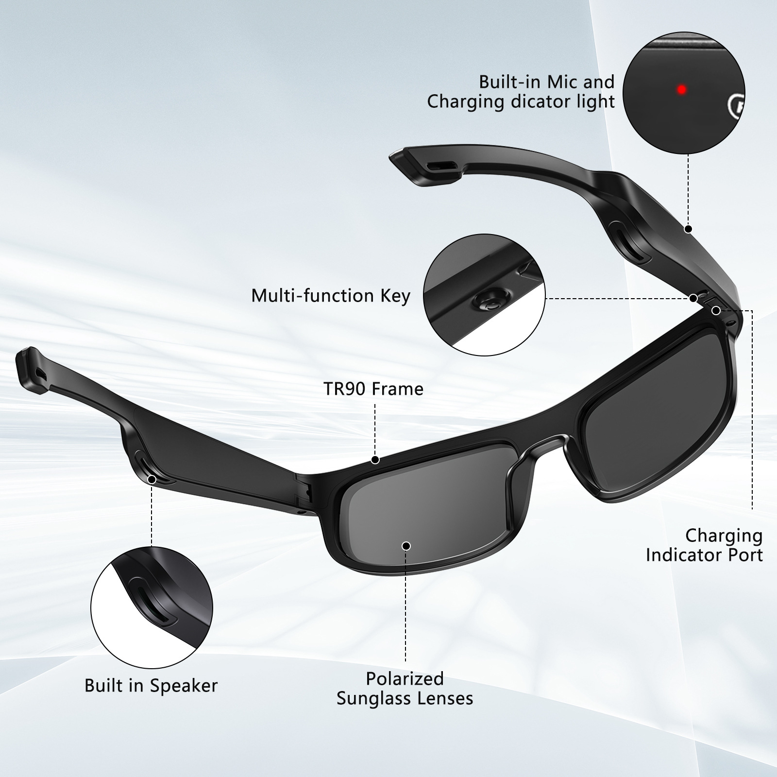 新款M8 Pro智能蓝牙太阳眼镜耳机骨传导骑行户外运动偏光通话墨镜