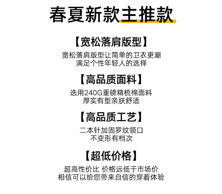 直播货源纯棉280G重磅短袖t恤男女落肩春夏纯色潮牌美式小领口T恤