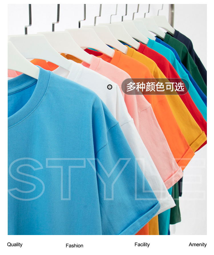 重磅短袖t恤夏季圆领230克纯棉体恤小领口纯色青少年男女正肩T恤
