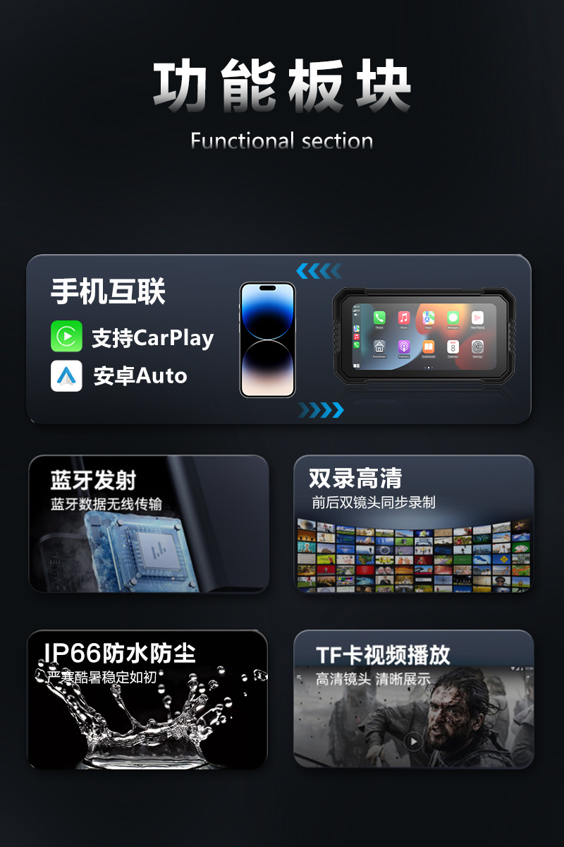 6.25寸前后摄像头摩托车记录仪 防水导航仪 Carplay胎压监测GPS