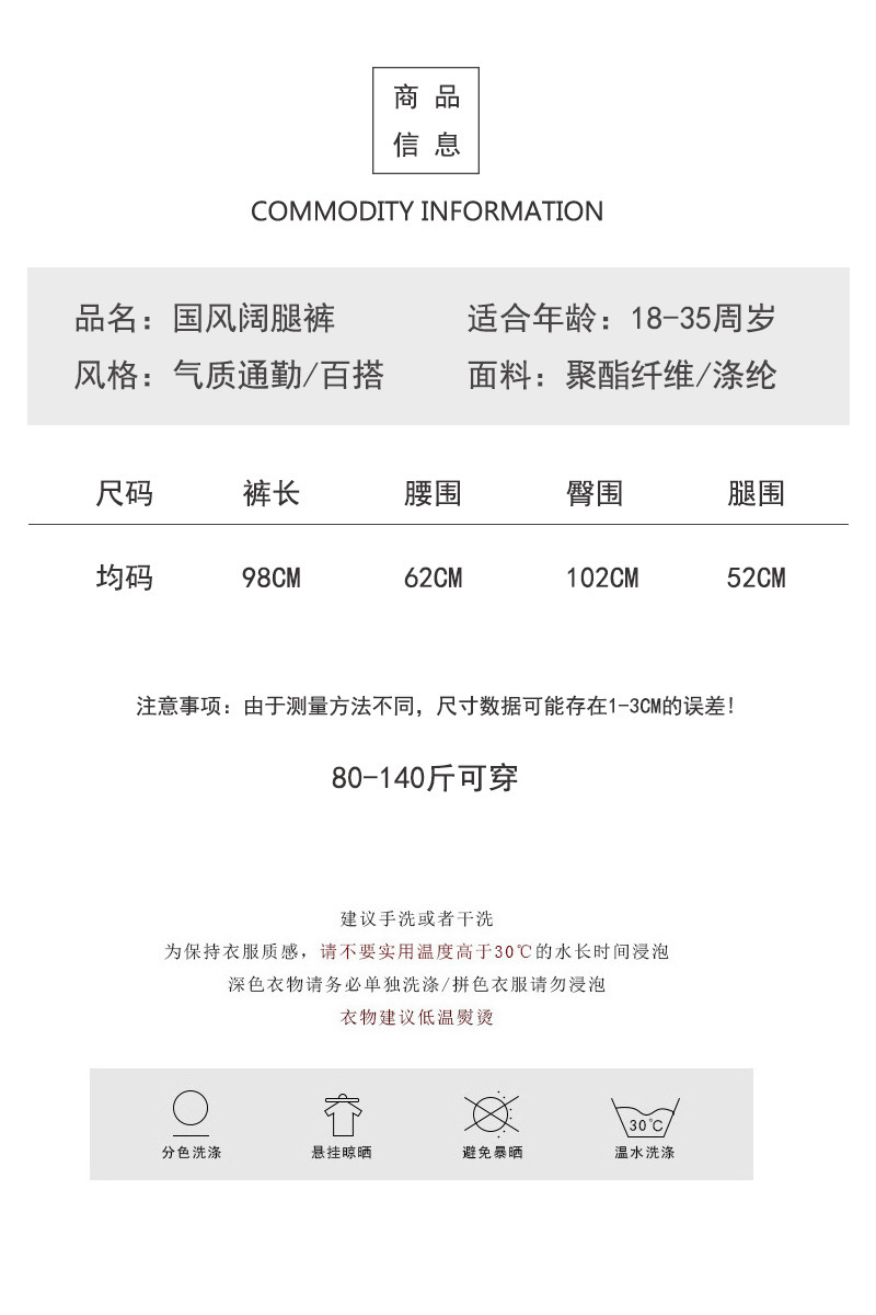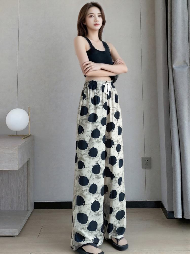 印花水墨国风冰丝阔腿裤女秋季高腰显瘦山本裤宽松直筒休闲遛弯裤