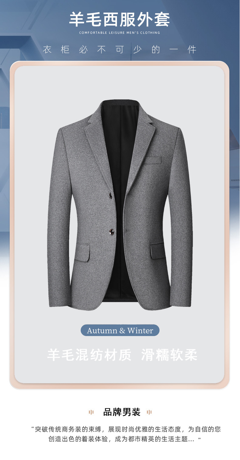 莱诗伯特羊毛西装男秋冬新款休闲小西装男中青年潮流韩版西服外套