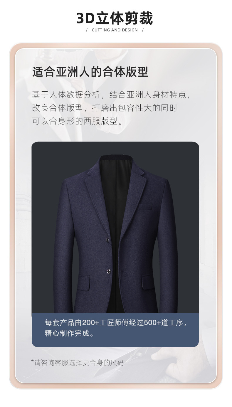 含羊毛秋季新款厚款商务休闲西装男士修身免烫西服可机洗单西外套