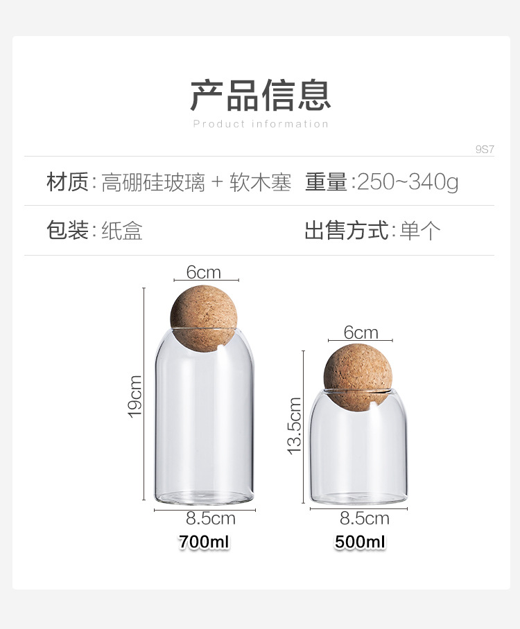 日式ins玻璃密封罐带盖圆形软木塞家用透明杂粮储物茶叶罐小