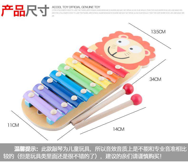 婴幼儿八音启蒙动物八音琴木质敲击小木琴早教幼教打击乐器玩具