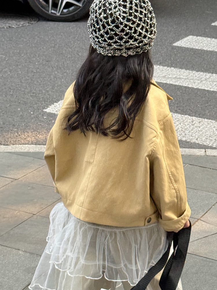 儿童pu皮衣复古仿真皮长袖夹克款短款皮夹克2025秋冬新款韩版